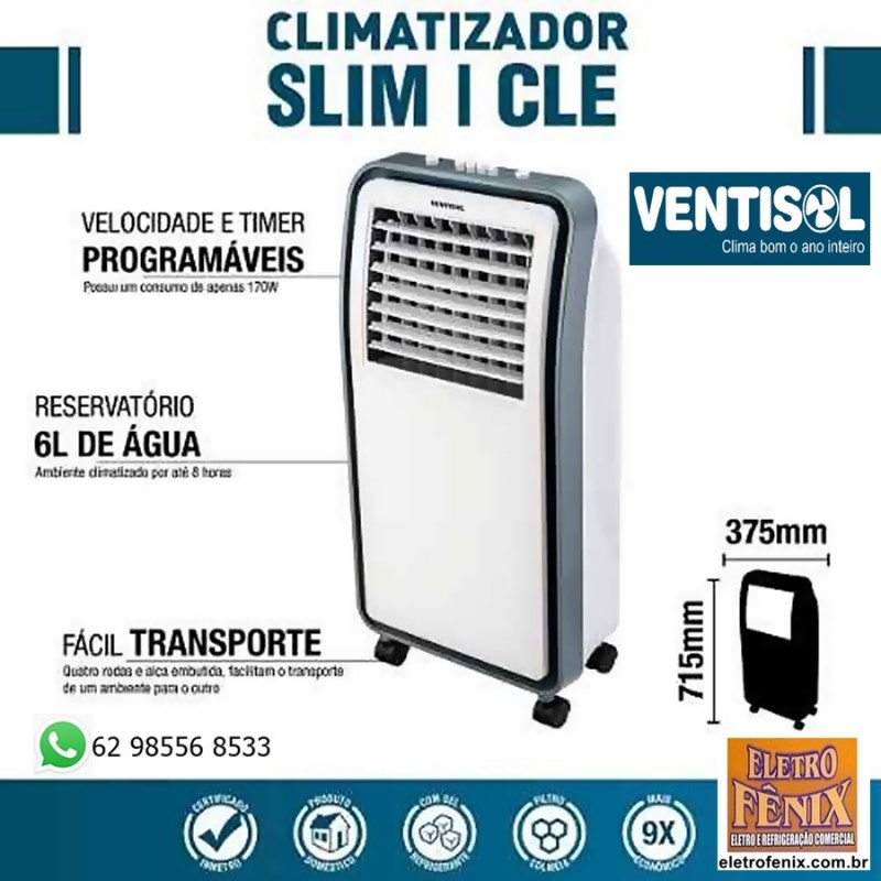 Ar mais puro, limpo e refrescante para você e sua família. Se você deseja um ambiente mais refrescante e agradável, o Climatizador de Ar Ventisol Slim CLE é ideal. Sendo até 9x mais econômico que um aparelho de ar condicionado, ele umidifica, ventila, refresca, ioniza o ambiente e auxilia na proteção contra mofo e bactérias.