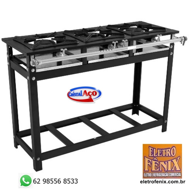Fogão Industrial 3 Bocas Standard 30x30 Baixa Pressão - Cristal Aço Fogão Standard 30 x 30 é confeccionada em chapa de aço carbono com pintura Epóxi. Fogão Baixa Pressão com 2 Queimadores Simples e 1 Duplo. Os queimadores são fabricados em alumínio, portanto são mais leves, tem alta resistência à corrosão. As grelhas são confeccionadas em ferro fundido e...