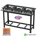 Fogão Baixa Pressão com 2 Queimadores Simples e 1 Duplo. Os queimadores são fabricados em alumínio, portanto são mais leves, tem alta resistência à corrosão. As grelhas são confeccionadas em ferro fundido e apresentam formato 30 x 30.