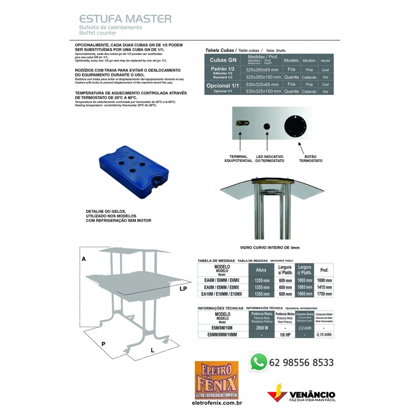 ESTUFA MASTER INOX CUBAS GELO-X - E6MX VENÂNCIO