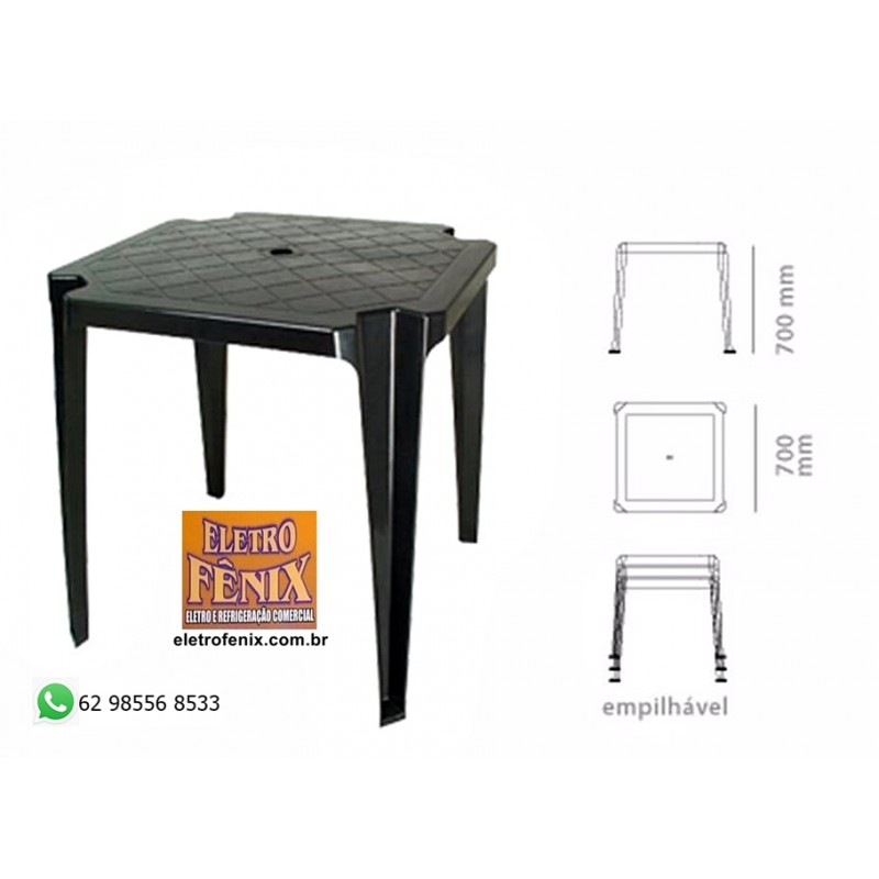 Mesa Plástica Plagon Ilha Bela 70x70 Preta